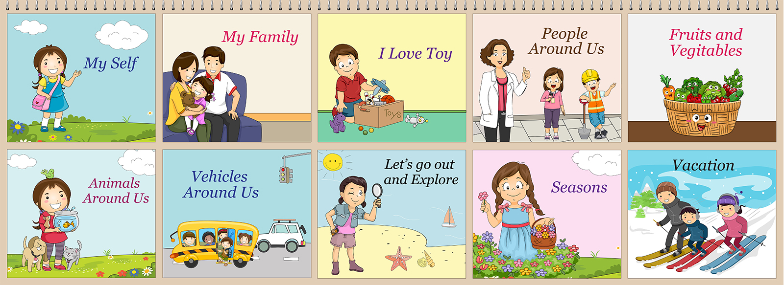 Teaching with themes also addresses the fact that children learn best through play, active exploration of their environment, and thoughtfully planned activities in each term. Our team of experts have build themes for every grade based on the interests of little learners, while teaching age appropriate skills. Happy Wisdom has also ensured that all the themes: